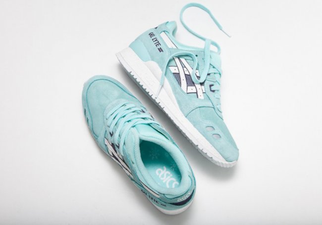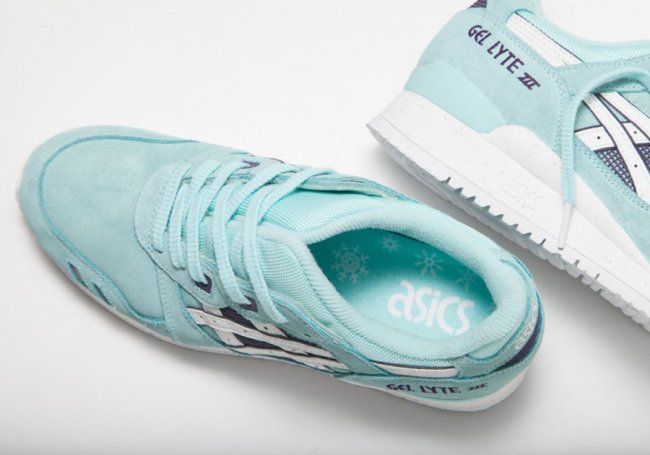 Asics 此次为我们带来一款清新配色的Gel Lyte III “Snowflake”,鞋款整体以薄荷绿为主色调,麂皮鞋身搭配同色调网面及内衬、鞋垫等细节。淡紫色与白色共同在鞋面上勾勒出Asics 标志性的Logo,鞋垫内印有白色雪花细节,再搭配上白色中底,鞋款整体清新脱俗。