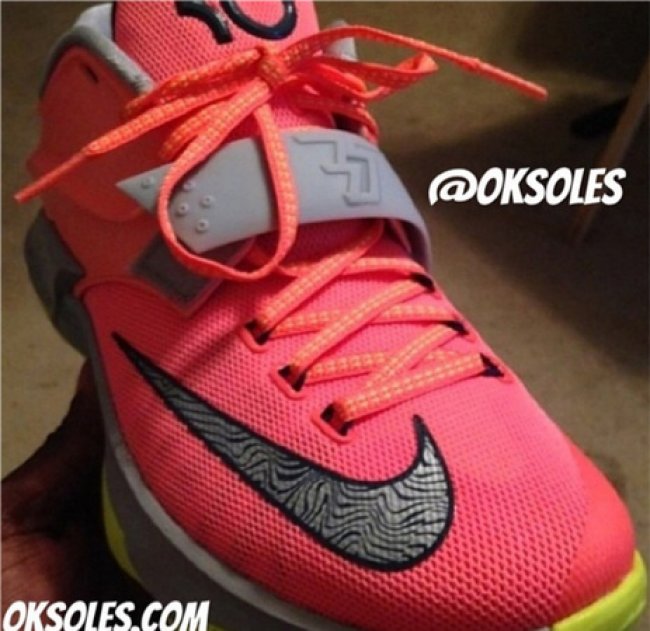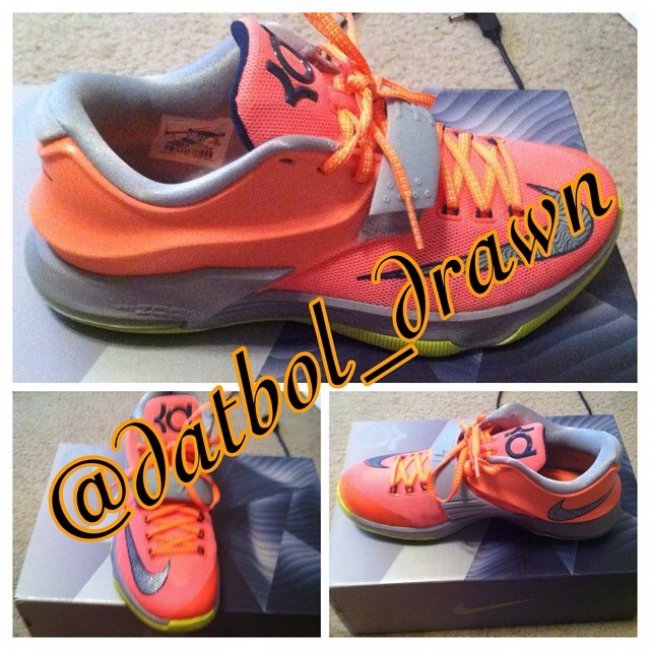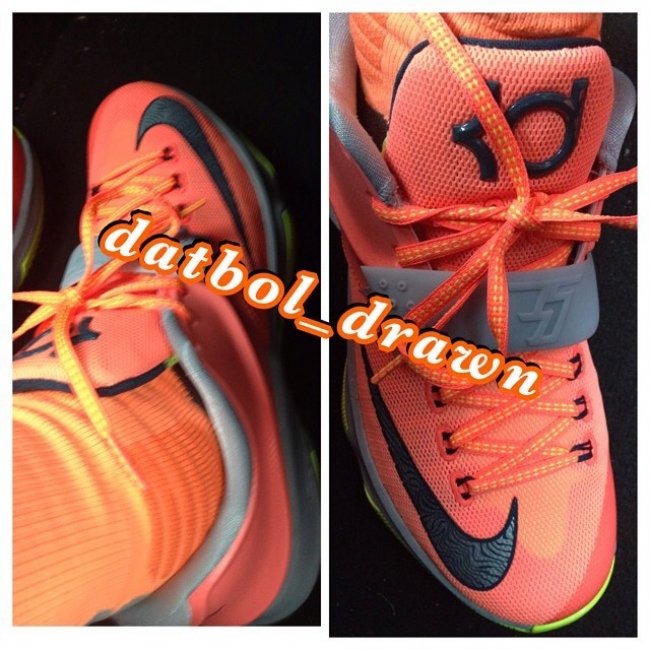 这款与Nike KD V“DMC”类似的Nike KD 7 据悉为 “Bright Crimson”配色,靓丽的橙色鞋身搭配灰色中底、内衬等细节,后跟Zoom Max及中底装饰则选用鲜艳的荧光色为点缀,令鞋款整体具有极强的视觉冲击感。