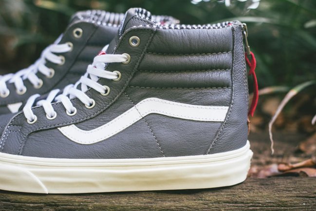 滑板品牌 Vans 旗下支线 Vans California 日前为招牌型号 Sk8-Hi Zip CA 推出了三款全新配色。今天小编单独要为大家带来的是其中一款灰色版本,鞋款采用灰色皮革构成鞋身主体,相当低调素雅,辅以白色的 Jazz Stripe、鞋带以及硫化大底,而后跟位置依旧搭载了 Sk8-Hi Zip CA 标志性的拉链设计,此外,拉链上捆绑着的红色皮革装饰也为鞋款增添了一丝活力。鞋款目前已在国外部分店铺提前上架。