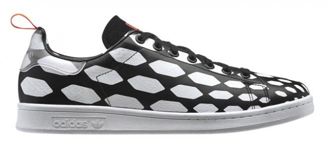 Stan Smith也是黑白抽象图案上身,一改往日的优雅形象,酷劲十足!喜爱Stan Smith的蓝血人,你会错过这一款吗?
