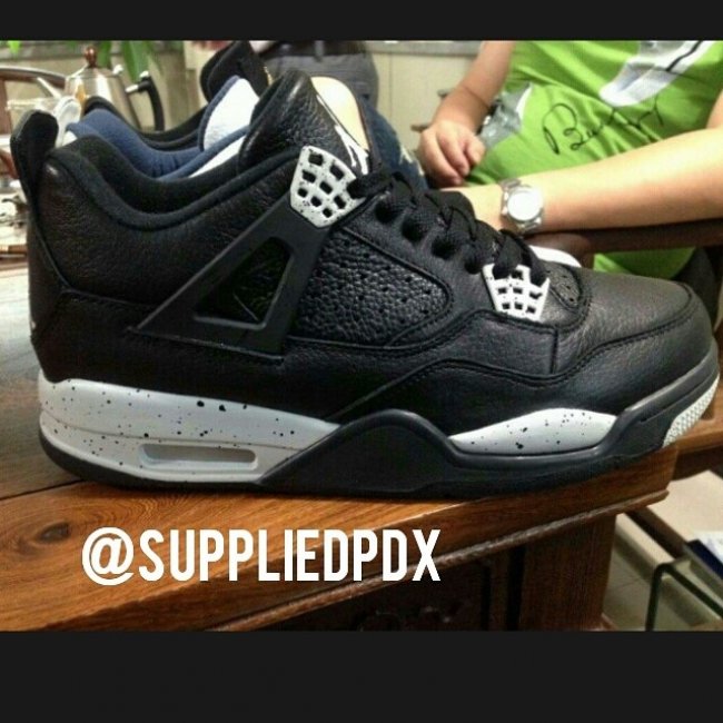 将于 2015 年复刻发售的 Air Jordan 4 "Oreo" 奥利奥配色曝光了实物图片。黑色皮质鞋面搭配泼墨中底,鞋身侧面没有采用塑料网格,而是以 Air Jordan 4+ 小改款鞋型皮革材质呈现,预计 15 年春季正式发售。