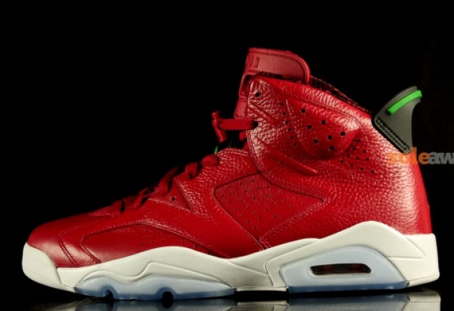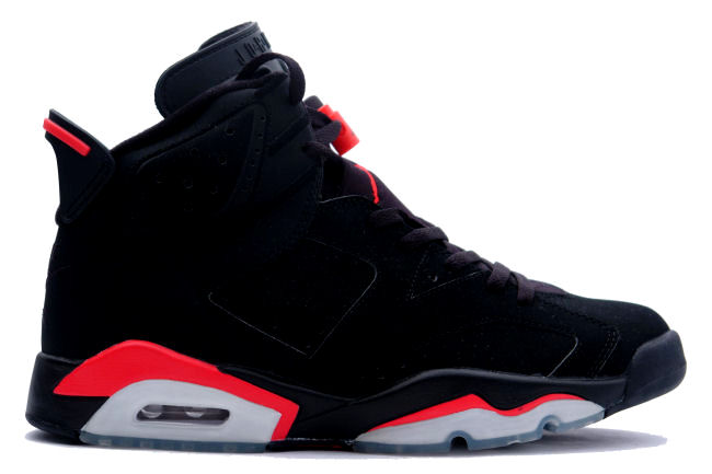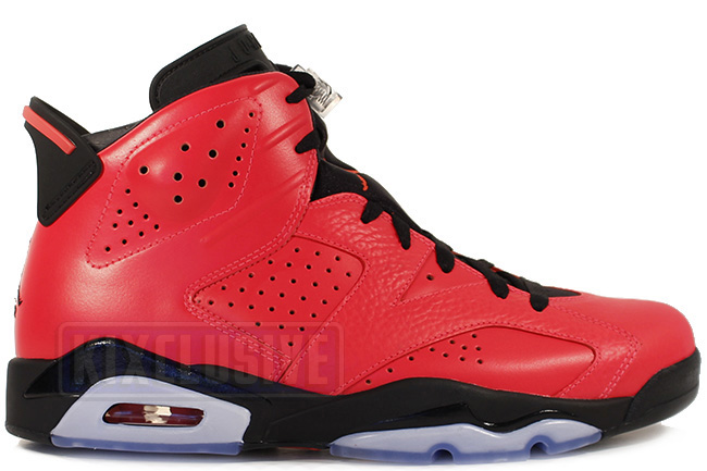 Air Jordan 6 红外线23, 2014 年初限量发售的全新配色的 Air Jordan 6,颜色采用夸张的红色覆盖整个鞋身。大红配色的球鞋也是最近一段时的流行势头,这得益于 Kanye West设计的 Nike Air Yeezy 2 Red October 的 空前成功。