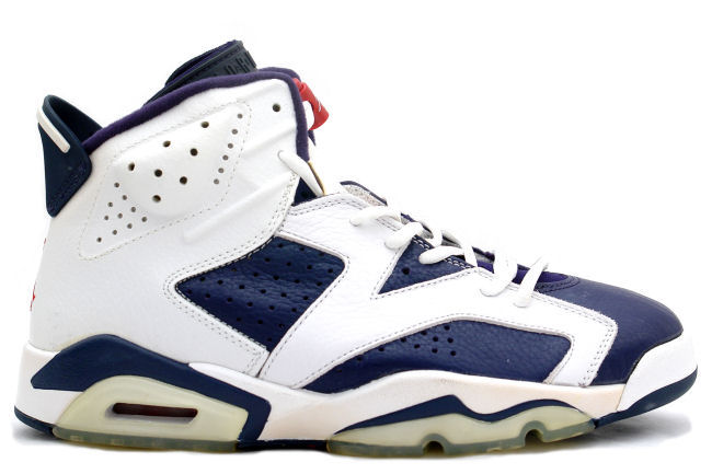 Air Jordan 6 奥林匹克,尽管这双鞋没有被乔丹本人在球场上驰骋。但这双鞋的绰号“奥运“的来历是因为 Jordan Brand 旗下助理代言人 雷阿伦于 2000 年在悉尼奥运会上穿着这双鞋征战而得名。这双名为 Air Jordan 6 奥林匹克的球鞋 于 2012 年复刻发售。