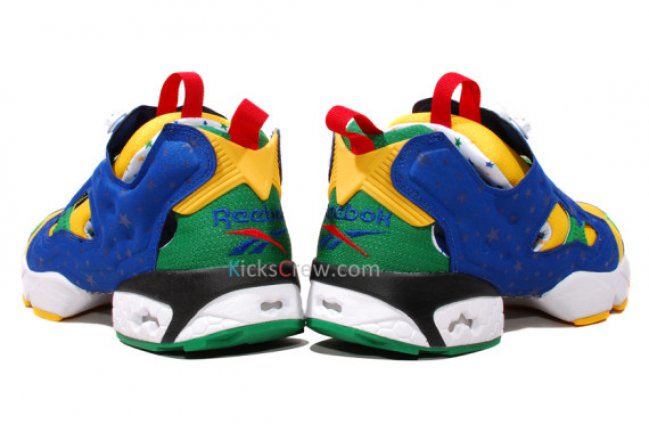 除了20周年联名款式之外,Reebok也将推出不少非合作配色Instapump Fury,比如眼前这款巴西世界杯配色版本。鞋身蓝、黄、绿三色构成的主色调最为直接的表达了巴西主题,细节以红色、黑色以及白色搭配,蓝色部分以及内衬的星星装饰则像现在群星闪耀的巴西一般。此款现已发售。