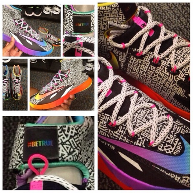 此前Nike官方已正式发布今年的#BeTrue系列产品,不过系列新款可不只有市售款式而已,比如眼前这双新曝光的Nike Hyperrev PE。鞋身黑色底色附上白色图腾装饰,左脚以渐变暖色调点缀,右脚则以渐变冷色调呈现,鞋舌绣有#BeTrue字样标志,整体风格极为耀眼。