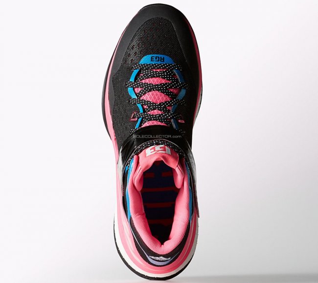 adidas RG3 Boost Trainer再度曝光全新配色,黑色鞋身搭配大面积粉色细节点缀,配合上鞋面的蓝色点缀,令鞋款纵然变身为熟悉的“南海岸“格调。adidas RG3 Boost Trainer 后跟搭载Boost缓震科技,配合轻量化鞋身与魔术贴带来不俗的性能。adidas RG3 Boost Trainer是为NFL华盛顿红皮队四分卫Robert Griffin III量身打造的签名鞋款。