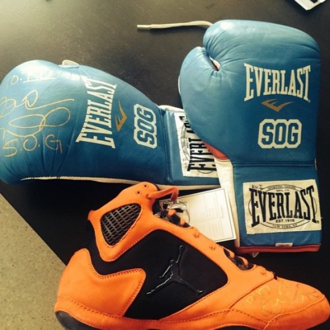 Jordan Brand是一个大家庭,很多运动员成员都来自各种各样的运动领域,比如拳击场,这也使得他们能够得到不少特殊的鞋款。拳击手Andre Ward就是其中之一,而眼前这双以Air Jordan 5为灵感设计的拳击鞋便是为其专属打造的鞋款,不过这双极为特别的PE现已转送给了粉丝,Kevin Durant。