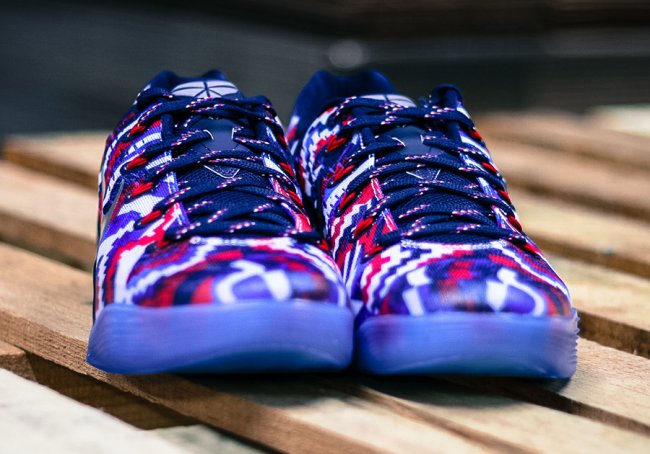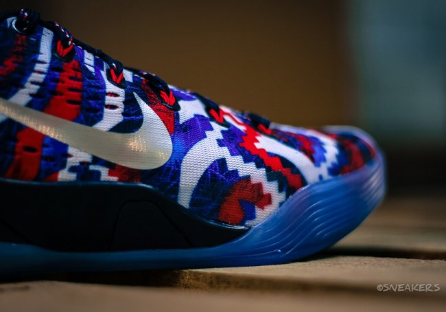 独立日临近,相关配色鞋款也将正式上架,Nike Kobe 9 EM就是其中的一款。鞋身工程网面织物以红、蓝、白三色条纹纹理装饰,搭配银灰色swoosh以及冰蓝色水晶大底。此款货号646701-104,6月26日正式发售。