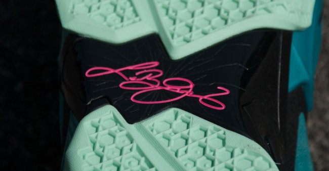 经典南海岸配色即将登陆 LeBron 11,水绿鞋身点缀粉红细节,在詹姆斯最新款战靴上的呈现颇为特别。这款 LeBron 11 "South Beach" 采用了水绿色的 Hyperfuse、Hyperposite 材质,拼接间隔则采用黑色打造,粉色细节凸显南海岸风情。 货号:616175-330 发售日期:6 月 21 日 发售价:$200