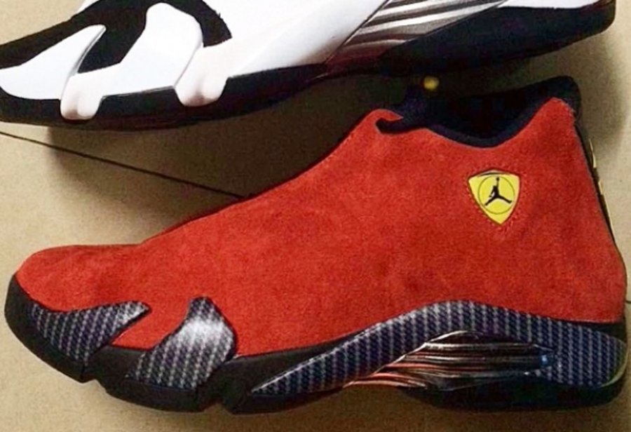 2014下半年将要登场多款 Air Jordan 14 Retro,其中最受关注的便是这款奢华的 “Ferrari” 配色了。日前鞋款的2014年复刻版本实物在网络上现身,鞋款以红色麂皮面料包裹鞋身主体,搭配上黑色鞋舌、后跟以及内里,细节则以黄色点缀,整体造型俨然就是一台引擎轰鸣着的法拉利超级跑车。鞋款暂定于今年秋季发售,具体发售日期还有待确定,敬请关注。