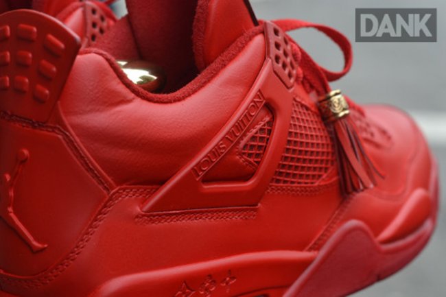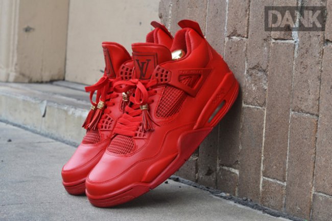 还记得之前定制大牌 Dank 定制设计推出的 Nike Air Jordan 4 么?近日 Dank 再次发布了一款全新定制的 Air Jordan 4 “Red Louis Vuitton Don” ,鞋子整体由红色皮质打造,鞋舌处印有LV的Logo,我们隐约可以看到木质的高端鞋撑,如同之前定制版一样。虽然此鞋款可能不会市售,但是曝出的图片也算是为我们提供了一场视觉盛宴。