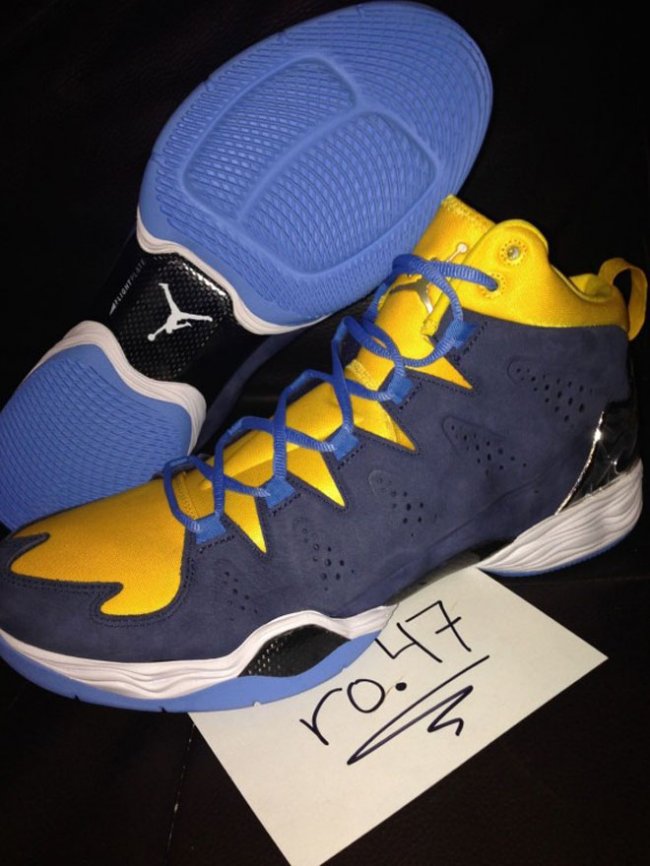 年初我们为大家报道过 Jordan Brand 为“超级星期六”推出的3款不同配色的 Jordan Melo M10,但是由于只有官网照,让我们未能尽兴。近日在知名网站eBay上曝出了 Jordan Melo M10 “Marquette” PE 球鞋。黄色配海军蓝的鞋面佐浅蓝色大底,俏皮的颜色让我们隐约看到了小黄人。目前不确定该鞋款会不会市售。