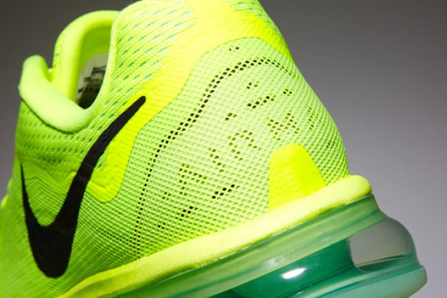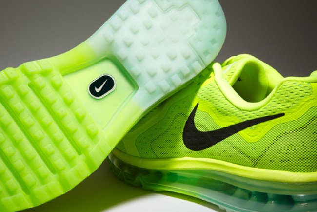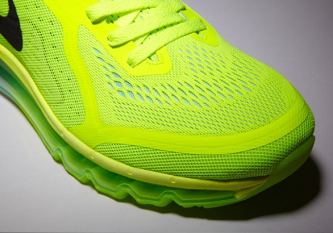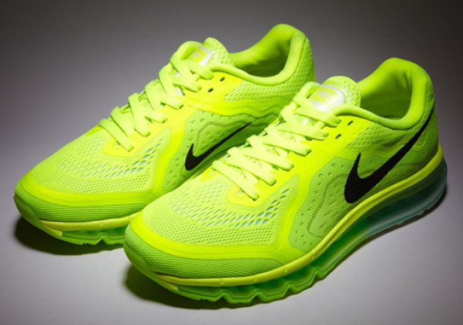Nike 似乎在近几年都会为主推Nike Air Max 跑鞋推出纯荧光色的版本,而这款Nike Air Max 2014 的曝光也继续了这一传统。大面积荧光色Hyperfuse鞋面搭配同色调内衬及鞋带,并辅以黑色Swoosh。Nike Air Max 2014 标志性的渐变大底则选用色浅不一的绿色呈现,令鞋款极为亮眼。