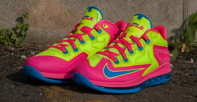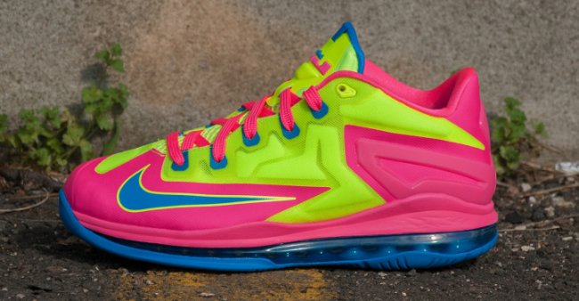 Nike LeBron XI Low 全新版本曝光,鲜艳的粉色、蓝色及荧光色组成鞋身,并搭配蓝色全掌可视Air Max 中底缓震,鞋款整体配色极为活泼。据悉,这双Nike LeBron XI Low 已于近日发售,货号:644534-700。