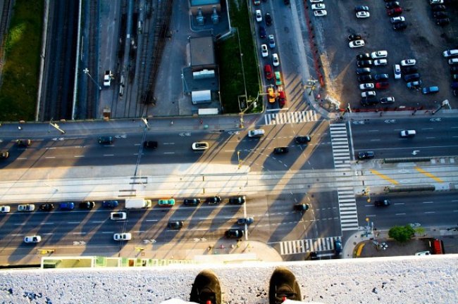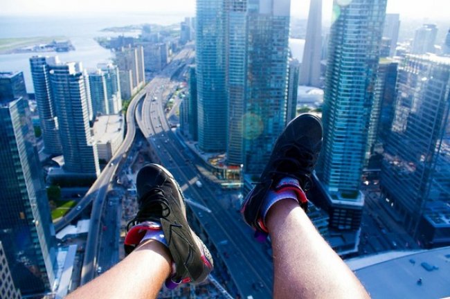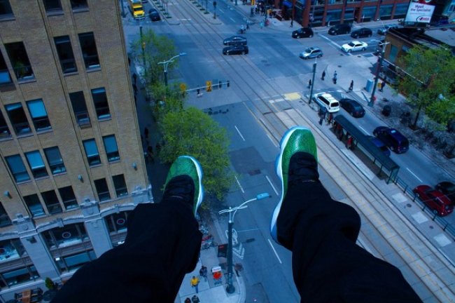 由街头摄影师 13th Witness 引发的高空秀鞋风,在海外球鞋爱好圈子里已经颇为风靡。此方式虽十分特别,也颇有看点,但请大家不要轻易尝试。 光是看看图片已让人脚软,若要亲自体验,恐怕还需要一定的胆量。
