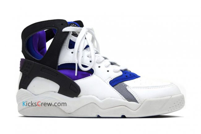 全新复刻的Nike Air Flight Huarache 将以最经典的元年白/黑/紫蓝配色方案回归,大面积白色鞋身搭配同色调大底,后跟黑色TPU射出装饰辅以紫色内靴,蓝色细节点缀其中。这款Nike Air Flight Huarache 预计将于近日正式上市,货号:686203-100。