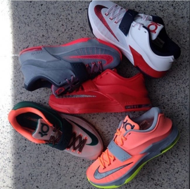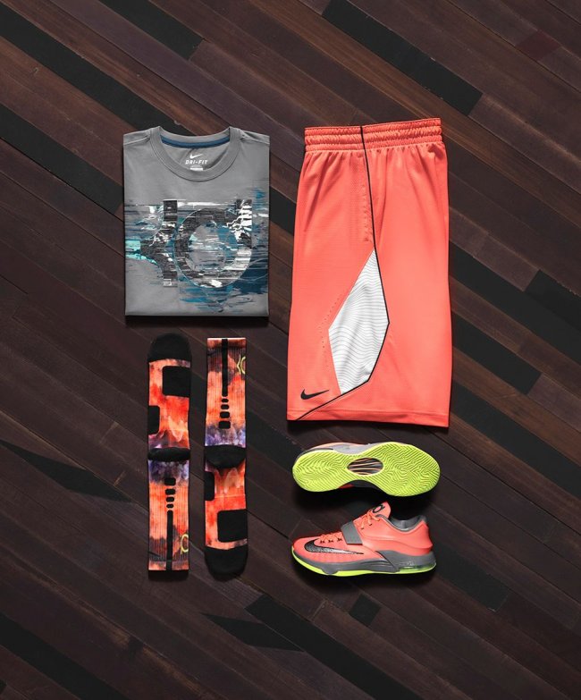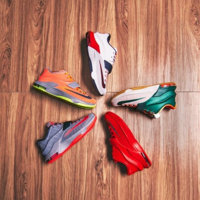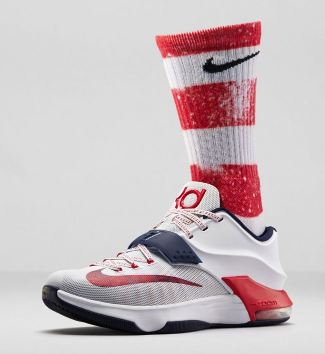 今天凌晨正式发布的Nike KD 7 现已确定将优先发售“July 4th“、 “Calm Before the Storm”、“Global Game”、“Easy Money”及“35 Degrees”这五款配色。其中“July 4th“配色将与配套精英袜共同在本周末(6月28日)正式发售,货号:653996-146。而“35 Degrees”则计划在7月12日发售,货号:653996-840。余下三款,尚无具体发售信息。