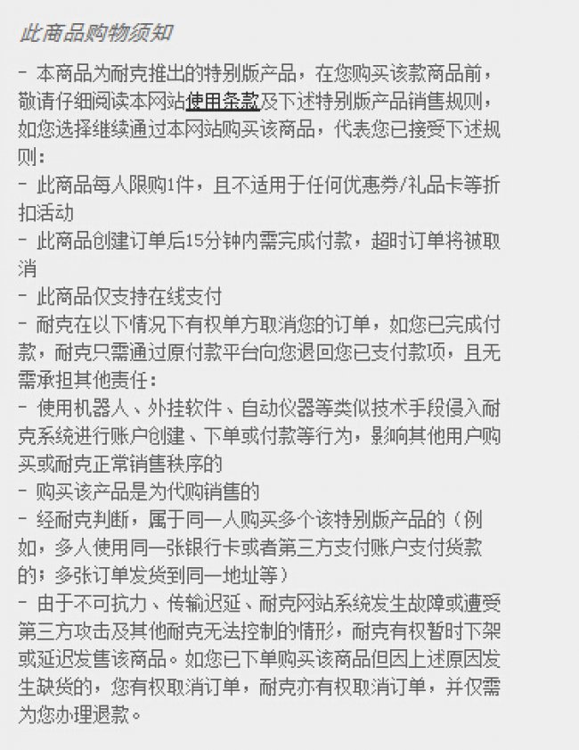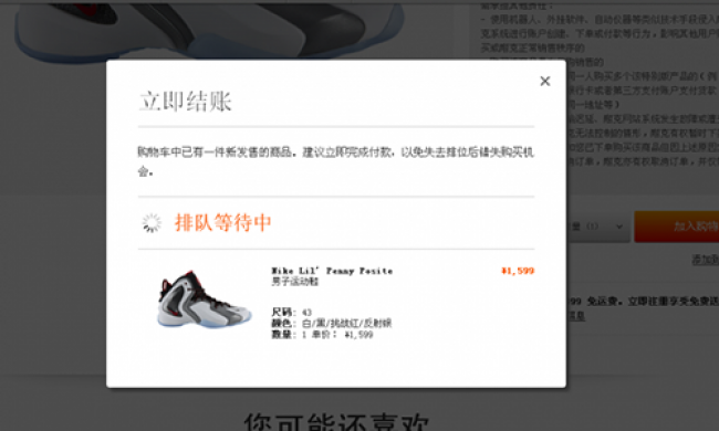 伴随今天上午发售的多款 Nike Lil Penny Posite,NikeStore 中国官网也在下单环节升级了全新的图片验证码,继排队策略之后,早已登陆美国官网的图片验证码终于在中国实施,无疑能进一步提升对抗机器人下单的能力。 在新的购物须知中,我们也能了解到 Nike 对于倒卖行为的最新政策,请大家关注。