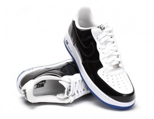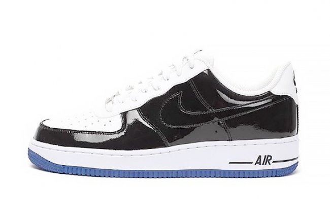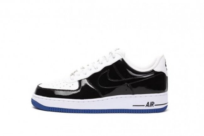 Concord 配色方案在 Air Jordan 系列的成功,让 Nike 看到了更大的商业价值。此次,Nike Sportswea r将 Concord 使用在经典鞋款 Nike Air Force 1 之上。鞋身由大面积黑色漆皮与白色细节装点而成,搭配白色中底与蓝色大底,简单的造型令人极易深刻。