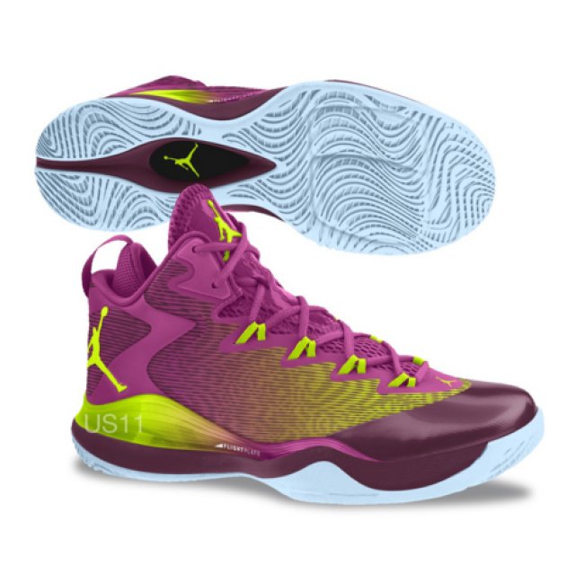 全新一代的Jordan Super Fly 3 曝光全新配色,紫色鞋身由大面积流线型透气网制作,并附带黄色的渐变状纹路。从预览图来看,Jordan Super Fly 3 将延续前一代的外底设计,并采用Zoom Air 的科技搭配。而从飘逸的中底设计来看,此鞋款后掌可能搭载Lunar缓震科技。据悉这款全新紫金配色的Jordan Super Fly 3 货号:684933-615,售价:1199RMB。