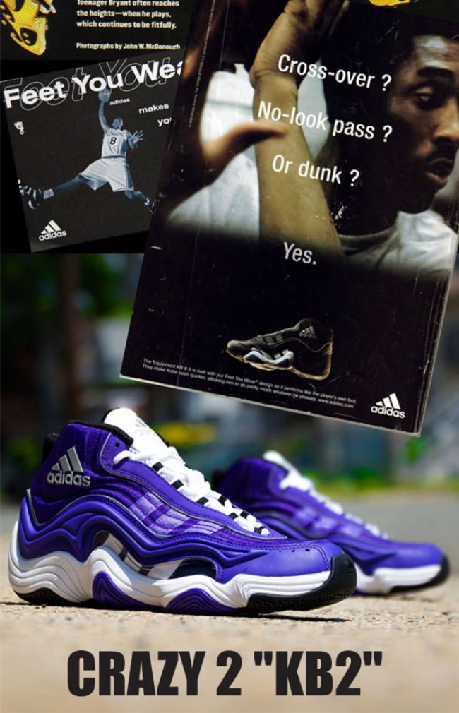 adidas EQT KB8 II 此次将以adidas Crazy II的名称复刻上市,可惜的是此次复刻仅保留了经典的外观与配色,标志性的天足大底设计却被移除。adidas Crazy II已于近日优先发售了黑/白/蓝及紫/白配色,喜欢的朋友不妨留意一下。