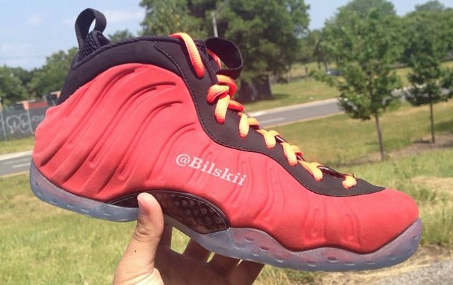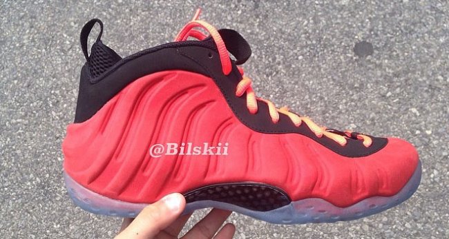 之前曾有一双黑色麂皮的Nike Air Foamposite One样品曝光于网络,现在又追加一双红色版本。鞋身呈现红色麂皮质感,搭配黑色细节以及冰蓝色水晶大底,不过网上出现了两个版本,鞋眼镶边分别为白色和黑色。