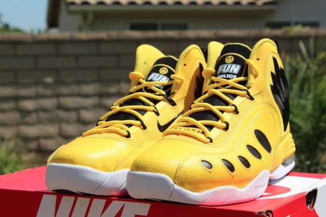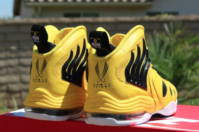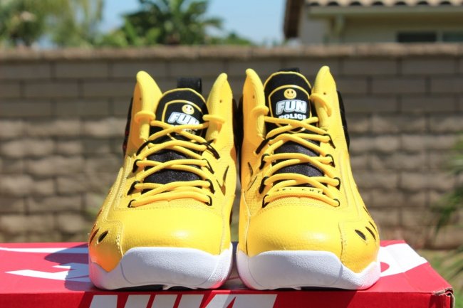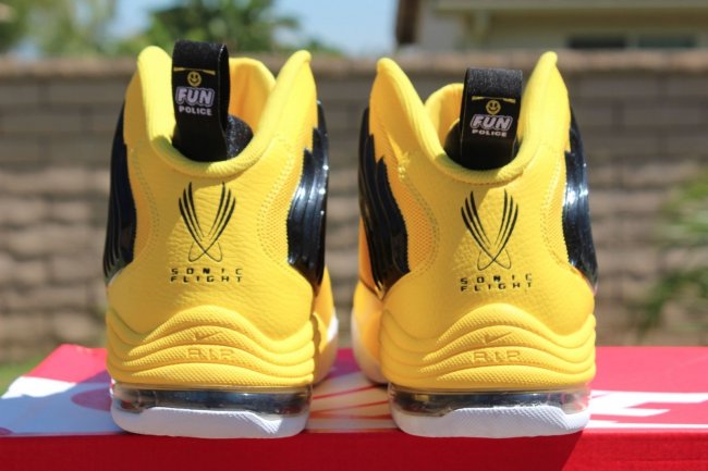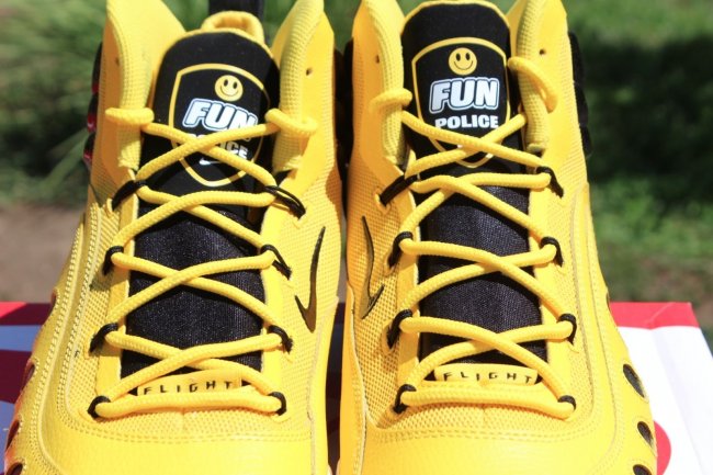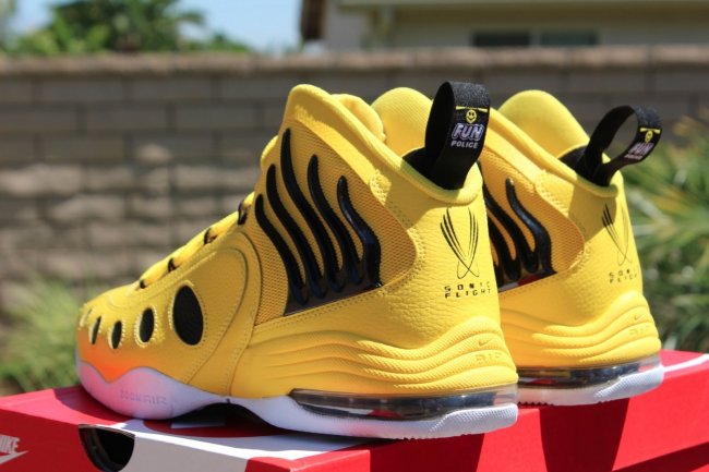 这双色彩鲜艳的Nike Sonic Flight 据悉是即将上市的“Fun Police”配色,该配色设计灵感来自于上世纪90年代加内特、佩顿等人拍摄的Nike著名广告“Fun Police”。鞋身以广告片中“Fun Police”的黄色风衣为灵感设计,使用大面积黄色皮革与织物拼接而成。黑色细节与白色大底的加入,让整体不再那么突兀。鞋舌及后跟提环处印有“Fun Police”标志性的笑脸Logo。据悉,这款极具特色的 Nike Sonic Flight,货号:641333-700。
