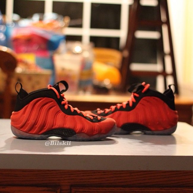 网上再次披露红色麂皮Nike Air Foamposite One样品的实物照,这是自黑色麂皮版本曝光后的第二款麂皮版本,红色鞋身搭配黑色内衬/鞋领/鞋眼装饰以及水晶大底,与早前市售的红色版本有着不同的特别风格。