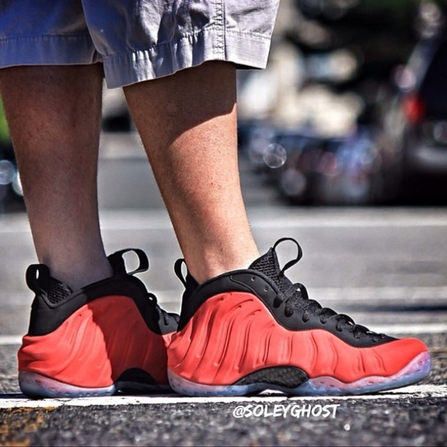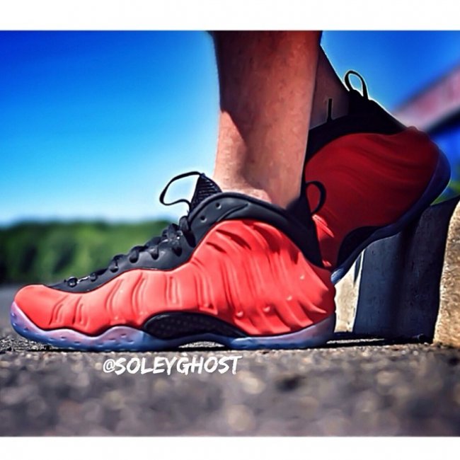 红色麂皮Nike Air Foamposite One样品的黑色鞋眼缝边版本再度曝出实物照,此番呈现的是上脚效果。虽然色调搭配与曾经市售的红色版本极为相似,但附着类似麂皮的全新foamposite却能表现出完全不同的质感,打理起来想必也得花一番功夫。此双样品暂无市售计划。