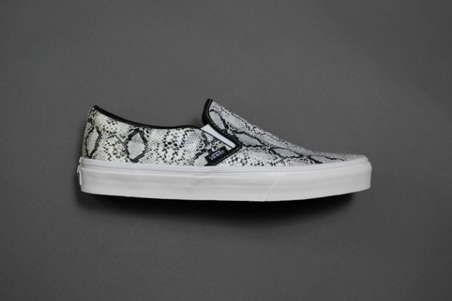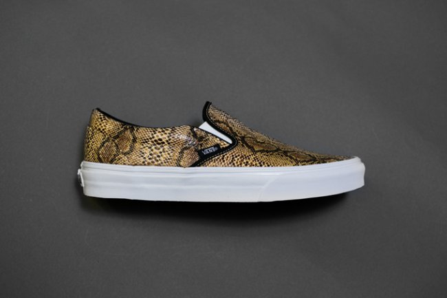 舒适轻便的 Slip-On 绝对是炎炎夏日最好的出门选择之一,日前滑板品牌 Vans 再度针对该型号推出了一款全新的蛇纹系列。系列包含了白色以及土黄色两款 Slip-On,鞋款鞋身以蟒蛇纹图案覆盖,并搭载上品牌招牌式的白色硫化大底。该系列将于近期登陆各大 Vans 专柜。