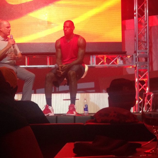又一次,全世界都在等待他的决定,不过LeBron James先在拉斯维加斯的Nike Basketball Skills Camp亲着曝光了自己的新一代球鞋。问答环节,James提前换上了白/红色调的“雄狮之心”配色Nike LeBron 12,如此举动或许也是Nike出于LeBron 11上镜太少的缘故的鼓励。