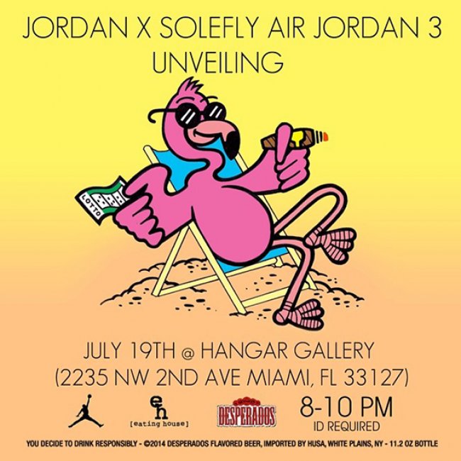 上个月Sneaker News为我们独家呈现了迈阿密店铺Solefly联名Jordan Brand打造的Air Jordan 3,而就在本周六,此双合作鞋款终于将要正式发布了。迈阿密Hangar Gallery,免费入场,凭(美国)身份证就能入场参观。