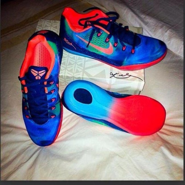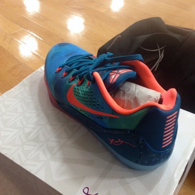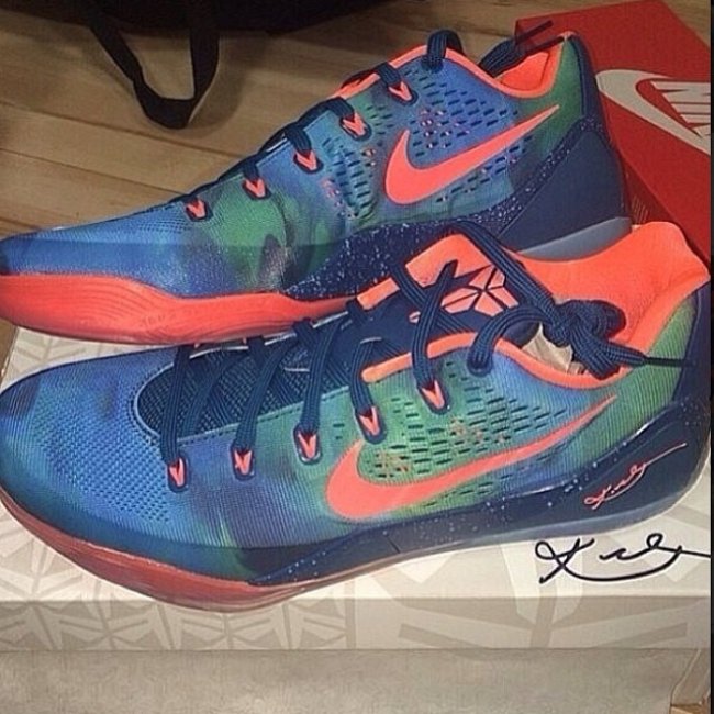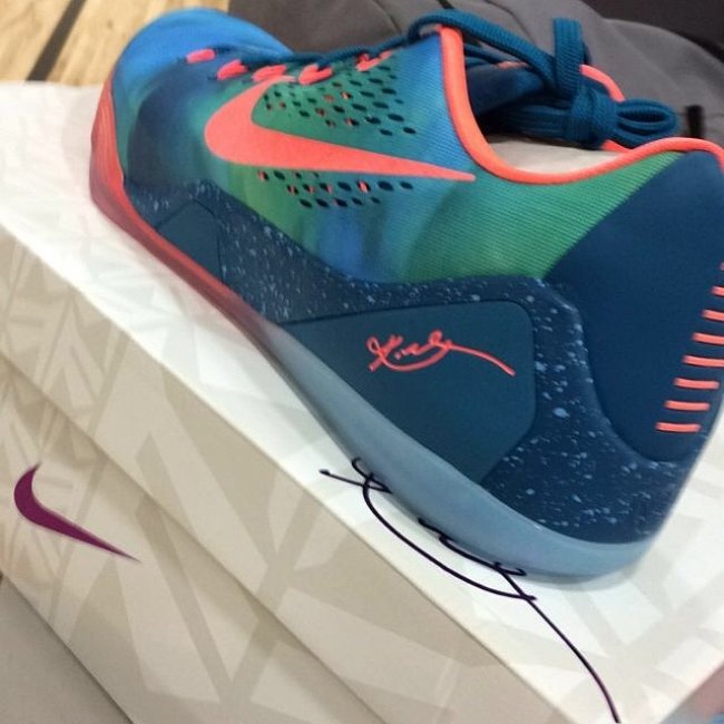 随着今年Nike EYBL(青年精英篮球联赛)Peach Jam冠军决赛的临近,部分参赛者已经提前收到了为他们准备的Nike Kobe 9 EM “Peach Jam”冠军决赛配色。蓝色工程网面鞋面辅以独特的绿色渐变效果,并搭配桃色内衬、Swoosh等细节。水晶大底内采用前桃色后蓝色的渐变呈现,令鞋款拥有不俗的视觉外观。这双Nike Kobe 9 EM “Peach Jam”据悉只为球员提供,应该没有市售的可能。