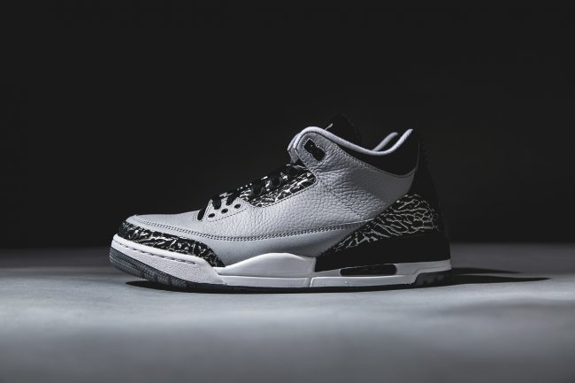 曝光许久的Air Jordan 3 狼灰配色终于将于本周末正式上市了!这款全新配色的Air Jordan 3 使用狼灰色鞋身搭配白色中底,鞋头及后跟的爆裂纹装饰则选用银黑色呈现,低调而奢华。Air Jordan 3 狼灰货号:136064-004。