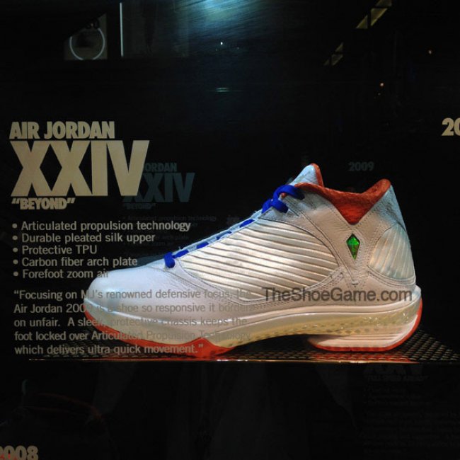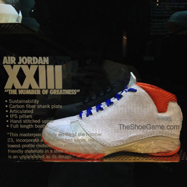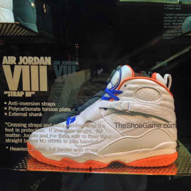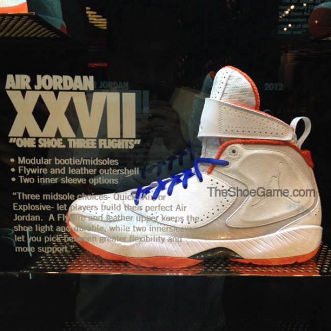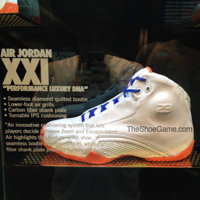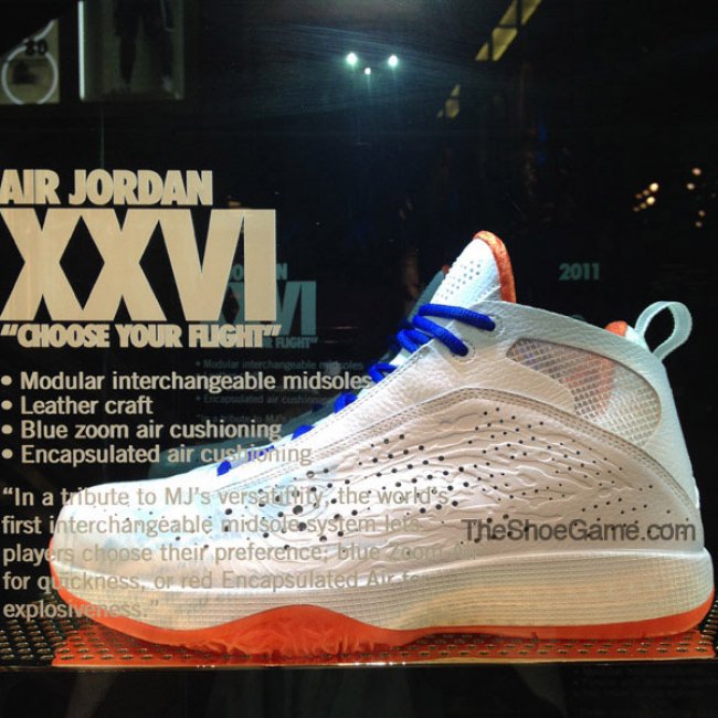 过去几年中,我们见过不少极为特别且从未市售的Air Jordan完整系列样品,比如乔治城的灰/海军蓝系列、纽约以及圣塔莫尼卡的History of Flight系列(国内部分店铺亦有展示纯白系列以及History of Flight系列)。而现在,拉斯维加斯Niketown则展示了部分尼克斯配色的Air Jordan鞋款。