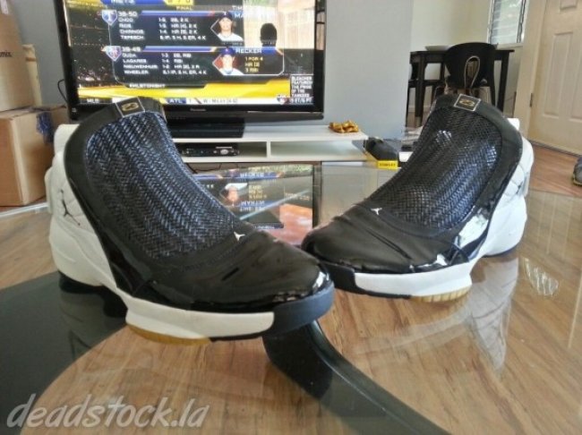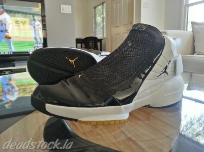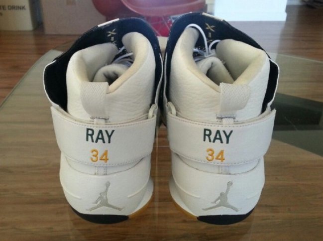 如今大家已习惯看到Ray Allen的热火或是凯尔特人色调Air Jordan PE,但别忘了他的超音速时期以及那时候的球员专属鞋款,比如眼前这双Air Jordan 19 PE。鞋身黑色搭配白色点缀黄色细节,整体风格与市售版本近似,后跟绑带的墨绿色RAY字样以及黄色数字34则是此双PE的灵魂所在。