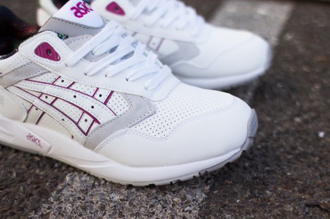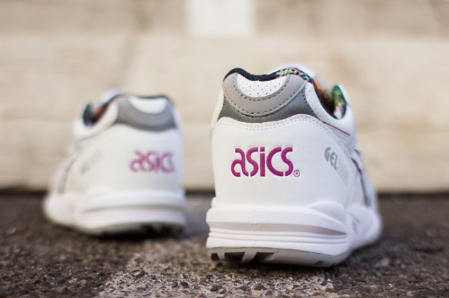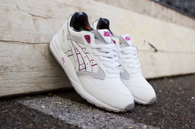 简单的配色往往可以给人一种很舒适的感觉,就像眼前这款Asics Gel Saga 一样。鞋款整体均使用白色呈现,白色皮革鞋面搭配白色中底,灰色外底及皮革装饰鞋面,仅以紫色勾勒鞋面Logo及细节。内衬则在黑色底色的基础上,印制了大量印花令其形成了独特的反差效果。这款Asics Gel Saga将于近日上市,售价:120欧元。
