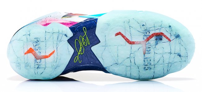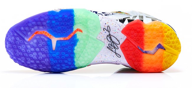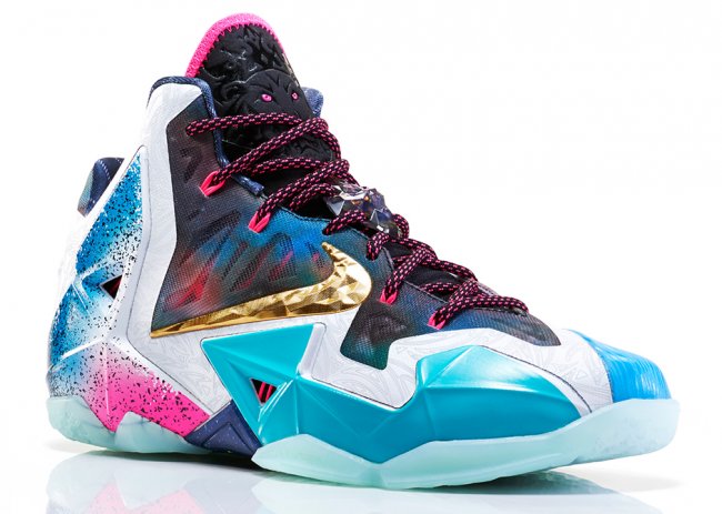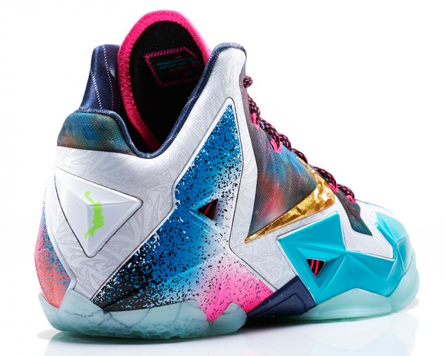 自华丽问世以来,勒布朗·詹姆斯签名球鞋已历经 11 年洗练,高性能科技与创意灵感臻至完美融合境界。两次联盟总冠军、四次常规赛 MVP、两次金牌得主 – – 该款球鞋中颠覆性科技创新的发展历程与勒布朗辉煌的职业成就交相辉映。2014 年,LEBRON 11 “What the LeBron”以勒布朗签名球鞋历史款型为灵感,借鉴八种产品设计元素和 20 种图案与配色,引爆混搭风潮。该款球鞋以创新和故事元素为依托,融合丰富的创意灵感,打造出众多所向披靡的细节设计,从而成就詹姆斯球鞋与众不同的超凡魅力。从 LEBRON VII 的鞋舌细节到 LEBRON V 融入的阿克伦地图,28 种巅峰元素强势汇聚。