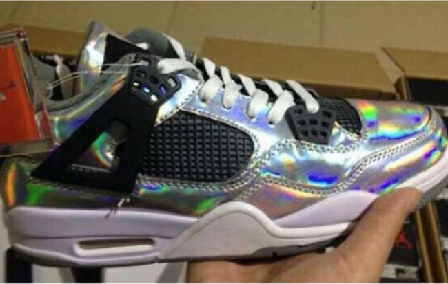 去年惊现网络的一款 Air Jordan 4 “棱镜” 配色日前再度曝光实物图片,这款 Air Jordan 4 采用了极为耀眼的金属质感材质包裹鞋身,在灯光下显现出彩虹般的反光效果。与首次曝光不同的是,从此次的缝线来看,此番曝光的鞋款或将为完成品,因此也有传言称该款配色有可能在今年年内市售,目前还没有确切消息证实这一传言。