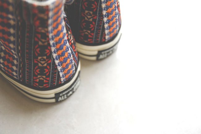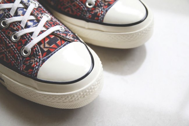 运动品牌 Converse 在去年以旗下常青树型号 Chuck Taylor All Star 为基础,推出全新升级的 1970s 版本,以此向这款诞生于20世纪70年代的经典作品致敬。日前品牌再度为其追加了一款全新配色设计,鞋款以民族图腾花纹满版覆盖于帆布鞋身之上,搭载上奶油色的鞋头以及中底,极具异域风情。