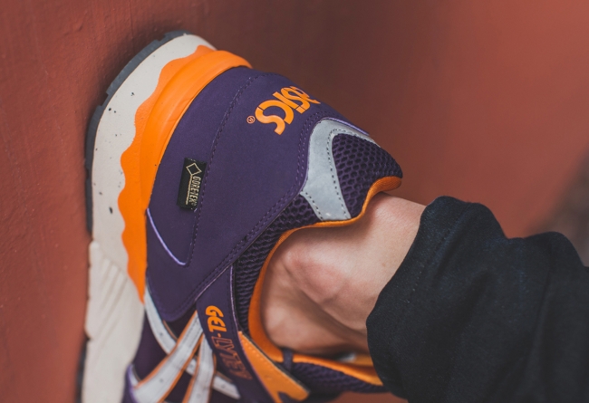 Asics Gel Lyte V 此次推出全新配色,紫色与黄色的色彩搭配让人联想到天使之城著名的洛杉矶湖人队。麂皮与网面的组合,令鞋款兼并了透气与质感。搭配浅色中底与白色Asics Logo,令鞋款极为抢眼。而 Gore-Tex 高档防水材料的运用,则进一步提升了鞋款的实用性。