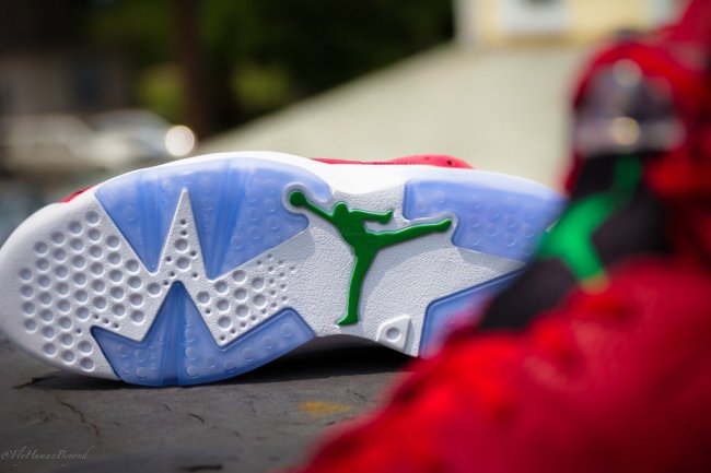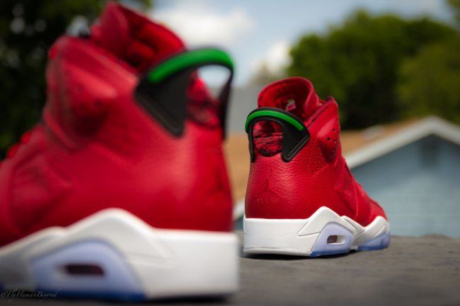 此款火红鞋身的 Air Jordan 6 “Spizike” 专为纪念斯派克李的电影《Do the Right Thing》25 周年所打造。红色皮质鞋面搭配白色中底和蓝水晶大底,整体效果十分抢眼。细节采用绿色点缀,红色内衬上的黑色图纹呈现了主题相关的内容,颇为特别。 将于 8 月 9 日正式发售,中国地区尚无官方的发售信息,我们将持续关注。 货号:694091-625 发售日期: 8 月 9 日