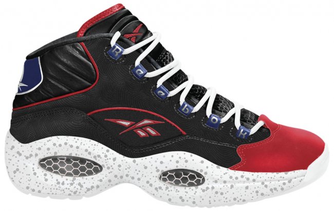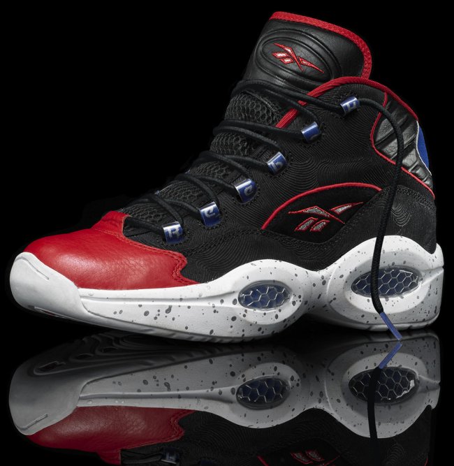 Reebok为了纪念Allen Iverson传奇的职业生涯和他超高的球技,推出了全新的Reebok Question “First Ballot”。 Question是Iverson第一双签名鞋,鞋面大部分以黑色为主,并伴有特殊纹理。其他部分以费城76人队的红蓝色为主,中底还有银色的喷溅效果。 8月15日零售商即将到货包括Finish Line, Champs, Jimmy Jazz, Eastbay, Footaction, Shiekh and reebok.com。发售价男鞋125美元,童鞋95美元,喜欢的朋友不要错过了。