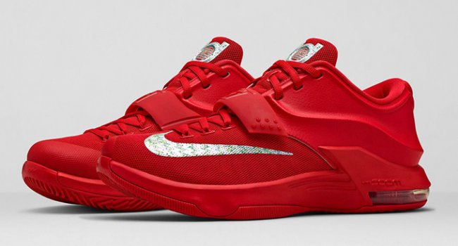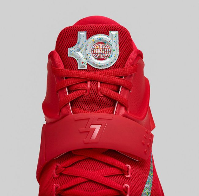 篮球运动让杜兰特这位在华盛顿郊外小镇上成长起来的年轻人穿梭于美国及亚欧大陆。这款纯红配色的 Nike KD7 "Global Game" 将地球的图案描绘在鞋舌上,同时Swoosh 上还点缀着节日的五彩碎屑。杜兰特即将引领美国男篮进入繁忙的夏季,第一站即为8月将在“风之城”芝加哥举办的耐克国际篮球嘉年华,而终点则是9月在西班牙举办的男篮世界杯。目前这款 KD7 "Global Game" 已于 Nike.com 以及各大专柜上架销售!