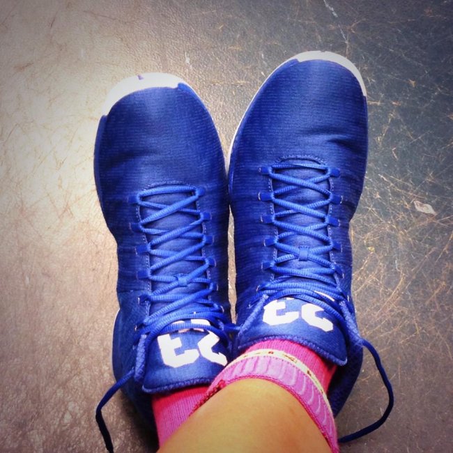 美国时间昨晚,Maya Moore在去对手Skylar Diggins 和Tulsa Shock的图中,亲自曝光了全新配色的Air Jordan XX9 PE。整双鞋以蓝色为主,可以清晰可见XX9特别的编织材料,鞋舌上的白色‘23’清晰可见,但不能看出鞋身大Logo的颜色。