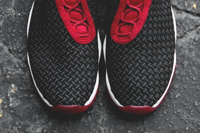 全新的黑红配色方案登陆细节完美的 Jordan Future Premium。白色中底和黑色编织鞋面形成抢眼的反差,鞋舌和大底的鲜红色交相呼应。鞋面带有 3M 反光点缀效果,进一步增添了亮点。将于 8 月 9 日正式发售,喜欢的朋友请关注。