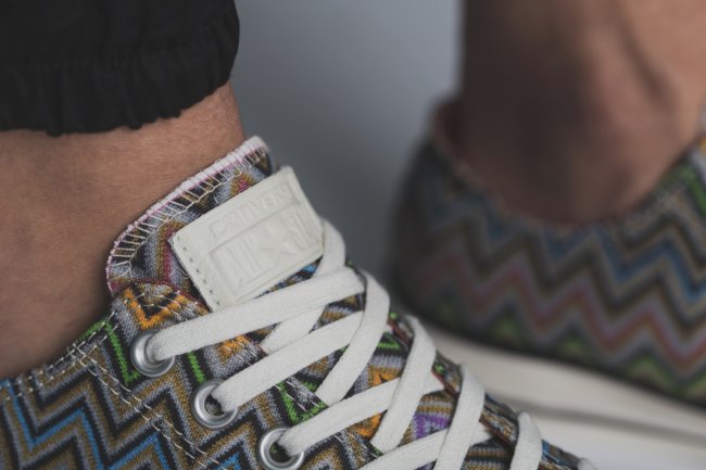 早前曾经介绍过,意大利老牌时装屋 Missoni 今季再度与运动品牌 Converse 携手,为 Chuck Taylor All Star 打造了全新的 2014 秋季联名系列,随著发售日期的不断临近,此番我们便为大家带来更多细节图览。与之前的合作一样,该系列一共包括高筒和低筒两个版本,设计上均是以 Chuck Taylor All Star 经典的造型轮廓出发,并采用了最为优质的帆布物料制作而成,辅以 Missoni 标志性的彩色锯齿图案布满鞋面,最后搭载白色硫化鞋底呈现,整体上营造出浓郁的地中海民族氛围。该系列将于 8 月 26 日起登陆品牌制定零售商,感兴趣的朋友不妨多多留意!