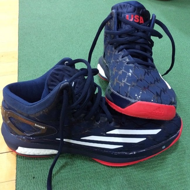 全新一届的美国男篮集训队为迎接本周末在Nike 世界篮球节上与巴西国家队的比赛,于芝加哥举行了公开训练。除了各位球星的场上表现之外,他们脚下的全新美国国家队战靴同样吸引了在场的众多媒体。送上全新一届梦之队上脚图赏,你都认识他们的主人吗?