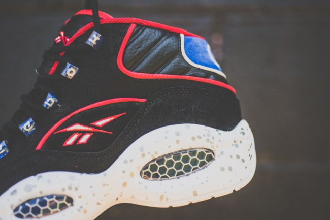 为了纪念阿伦 艾弗森在 1996 年 6 月 26 日被费城76人队选中,Reebok 日前以此推出了一款 Question Mid “1st Ballot” 。鞋款以黑色打造鞋身,辅以红色皮革鞋头,后跟则以宝蓝色麂皮呈现,最后搭配红色线条点缀。鞋款将从美国时间8月15日起于指定店铺限量发售。