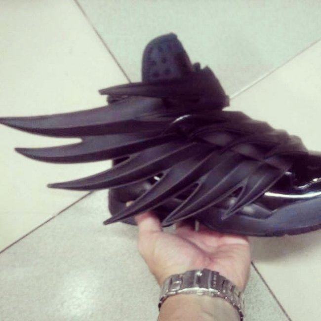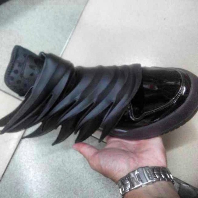 近日网络上曝光了一双全新版本的adidas Originals鞋款,高帮鞋身整体以黑色为主色调,鞋面选用闪亮的漆皮制作。鞋面上辅以夸张的翅膀状魔术贴设计,令鞋款拥有不俗的视觉冲击。PS:此鞋夸张的造型,颇有点鬼才Jeremy Scott的风格。